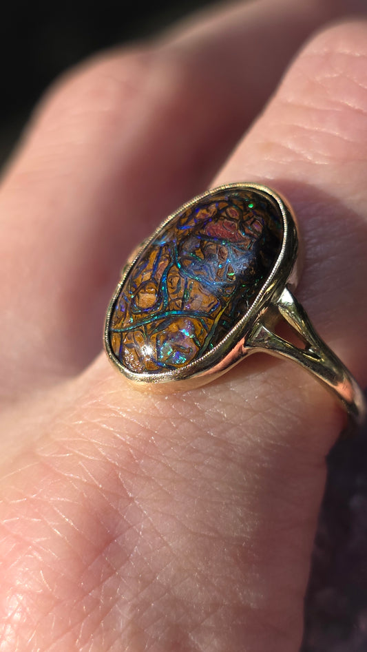 14k Koroit Boulder Opal Ring