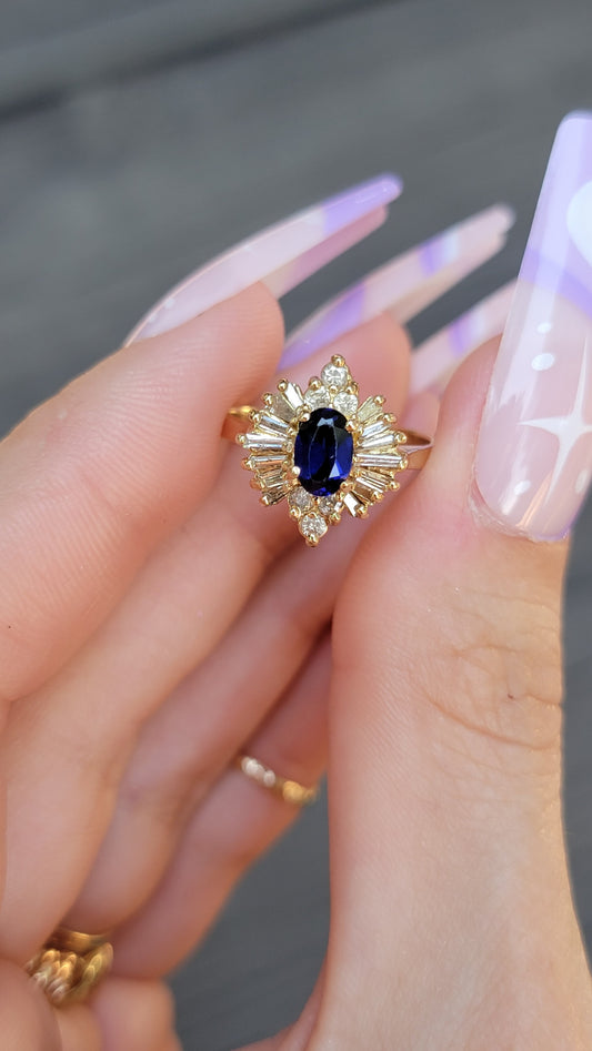 Vintage 18kt Blue Topaz and Diamond Tiara RingRegular price $1,895.00 USDRegular priceUnit price per$2,300.00 USDSale price $1,895.00 USDSold out