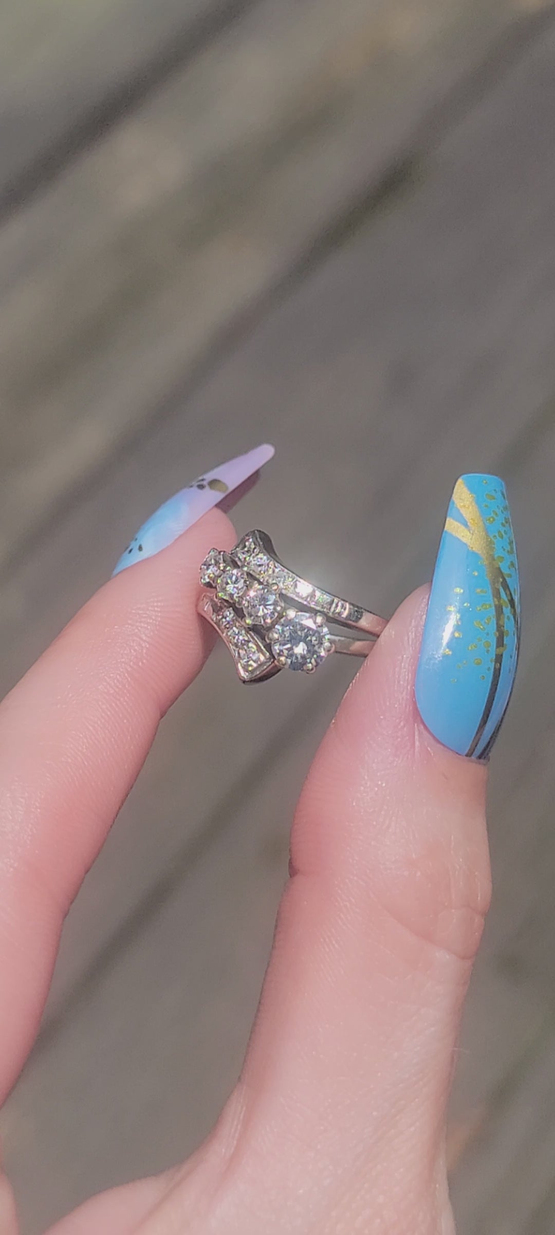 Your stunning vintage diamond ring is crafted from 14k white gold and weighs approx 3.6g. The total diamond weight is approximately 0.80 carats.