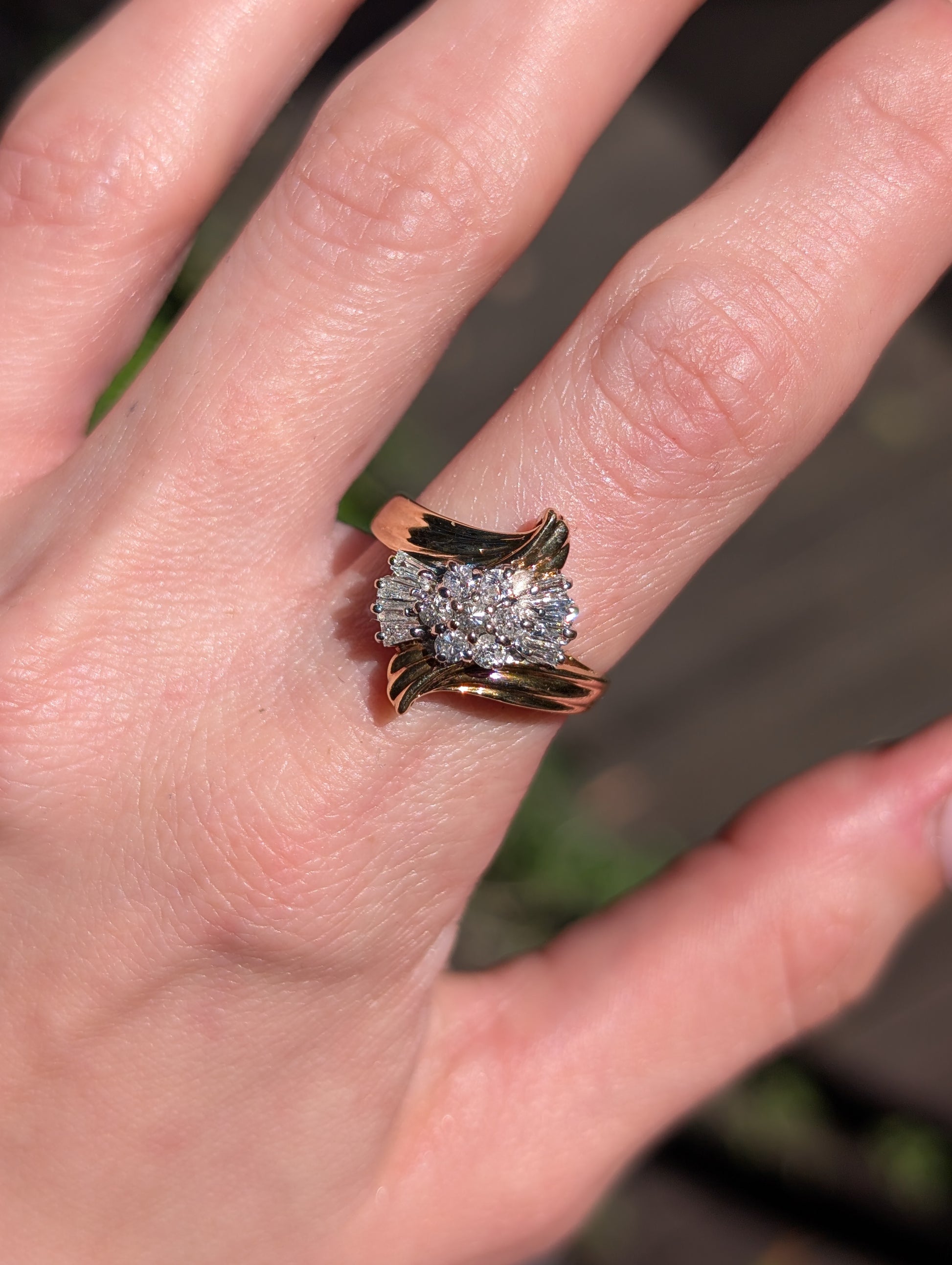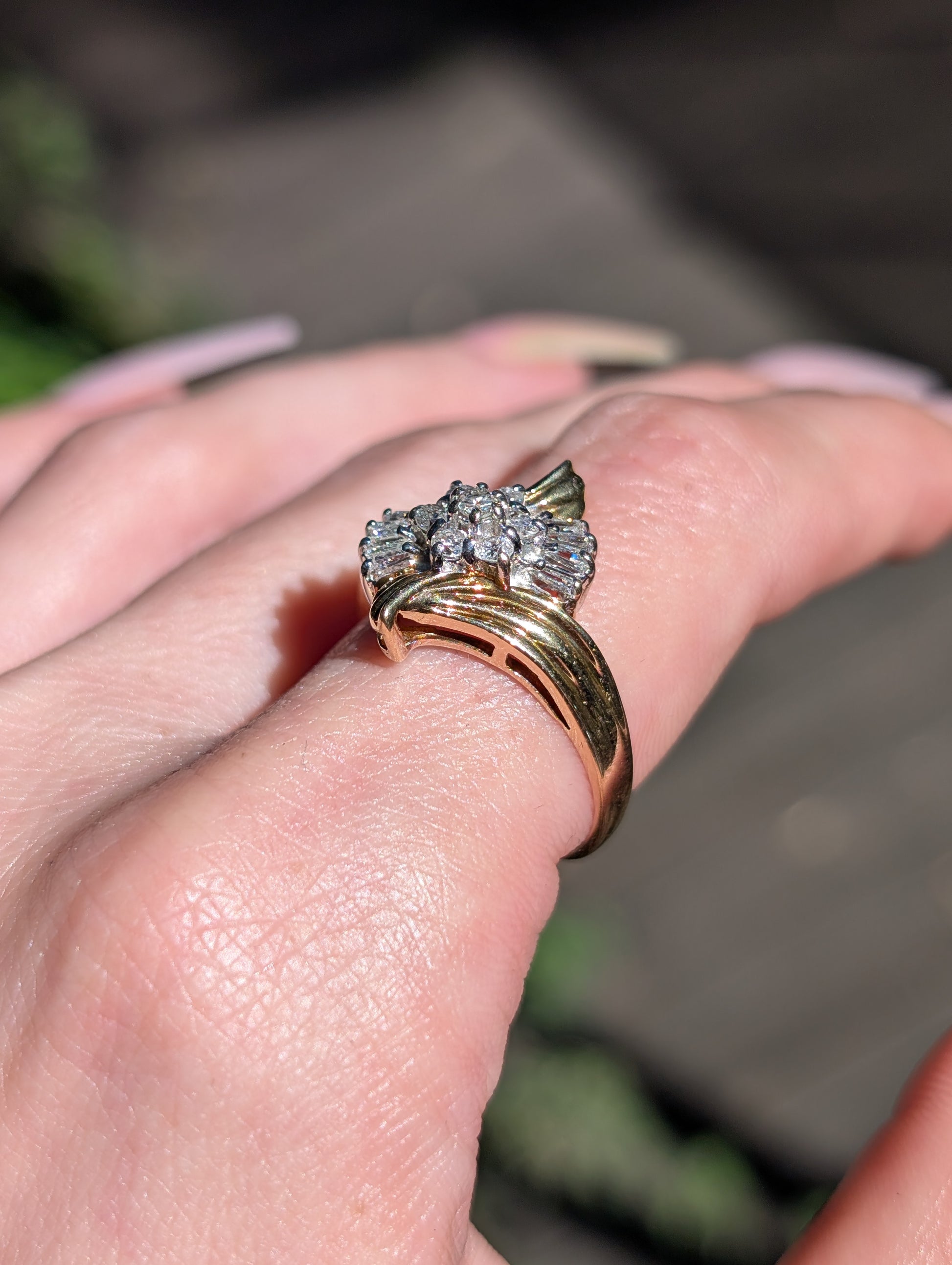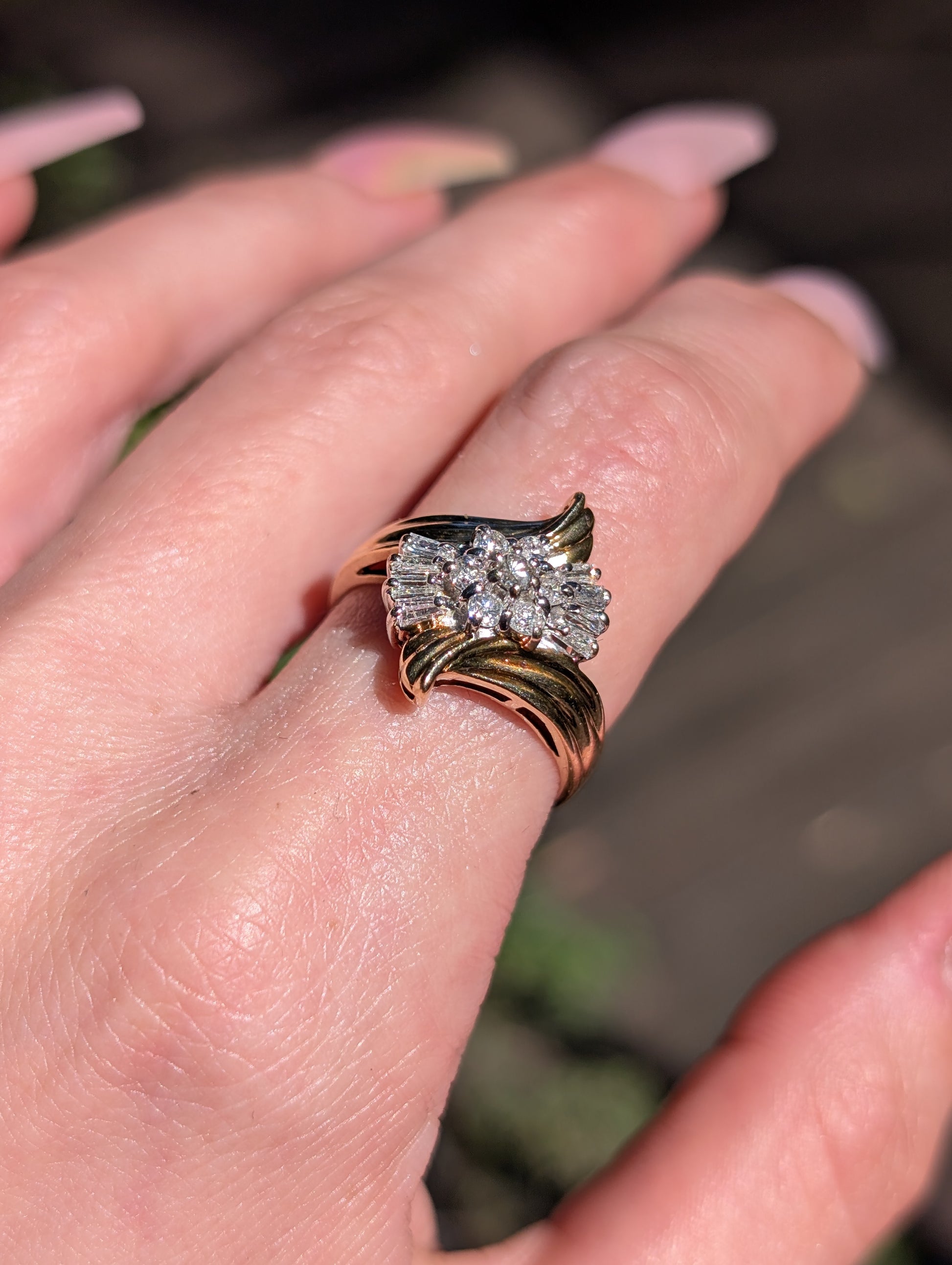 14k Diamond Foral Spray Ring