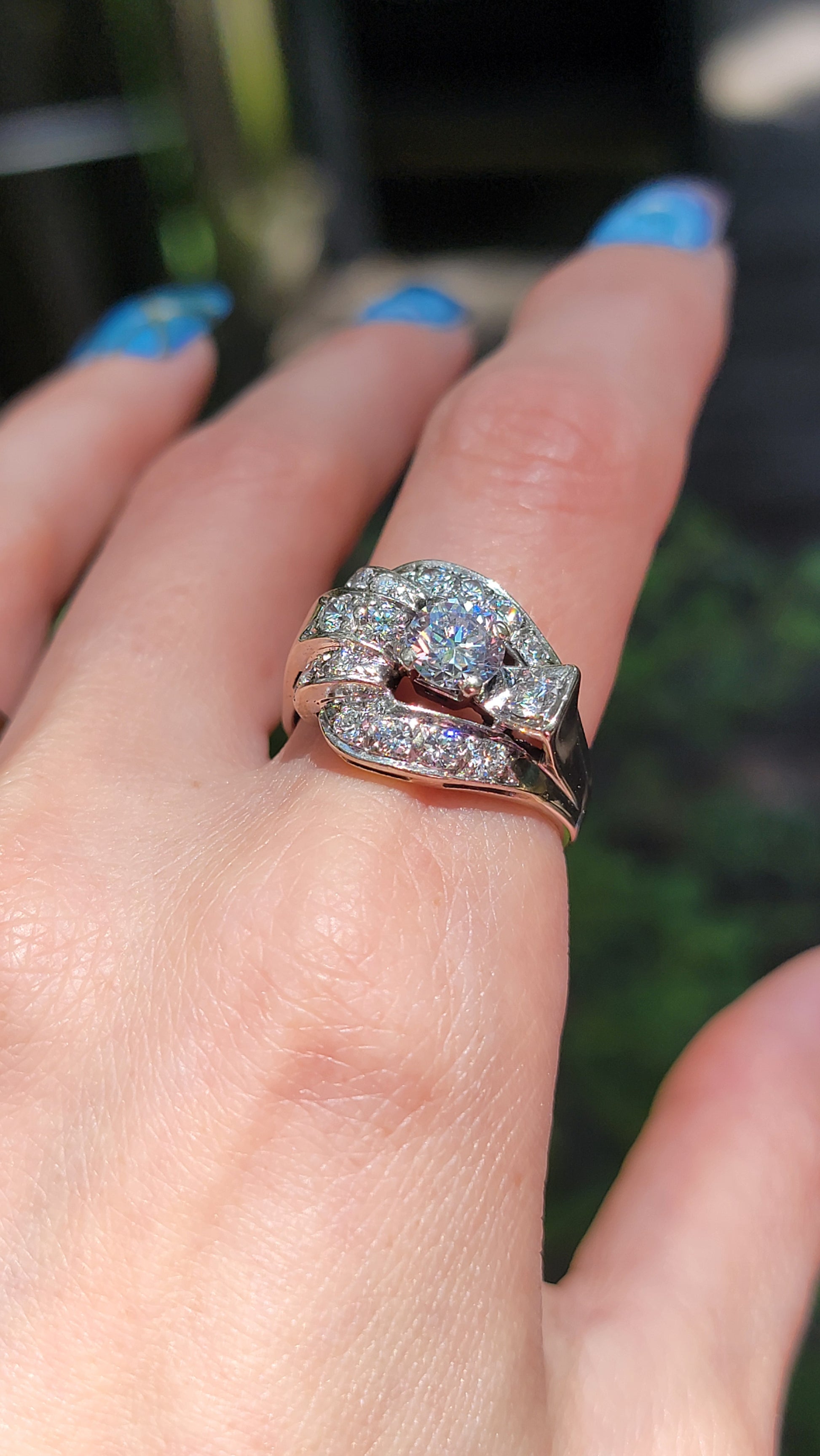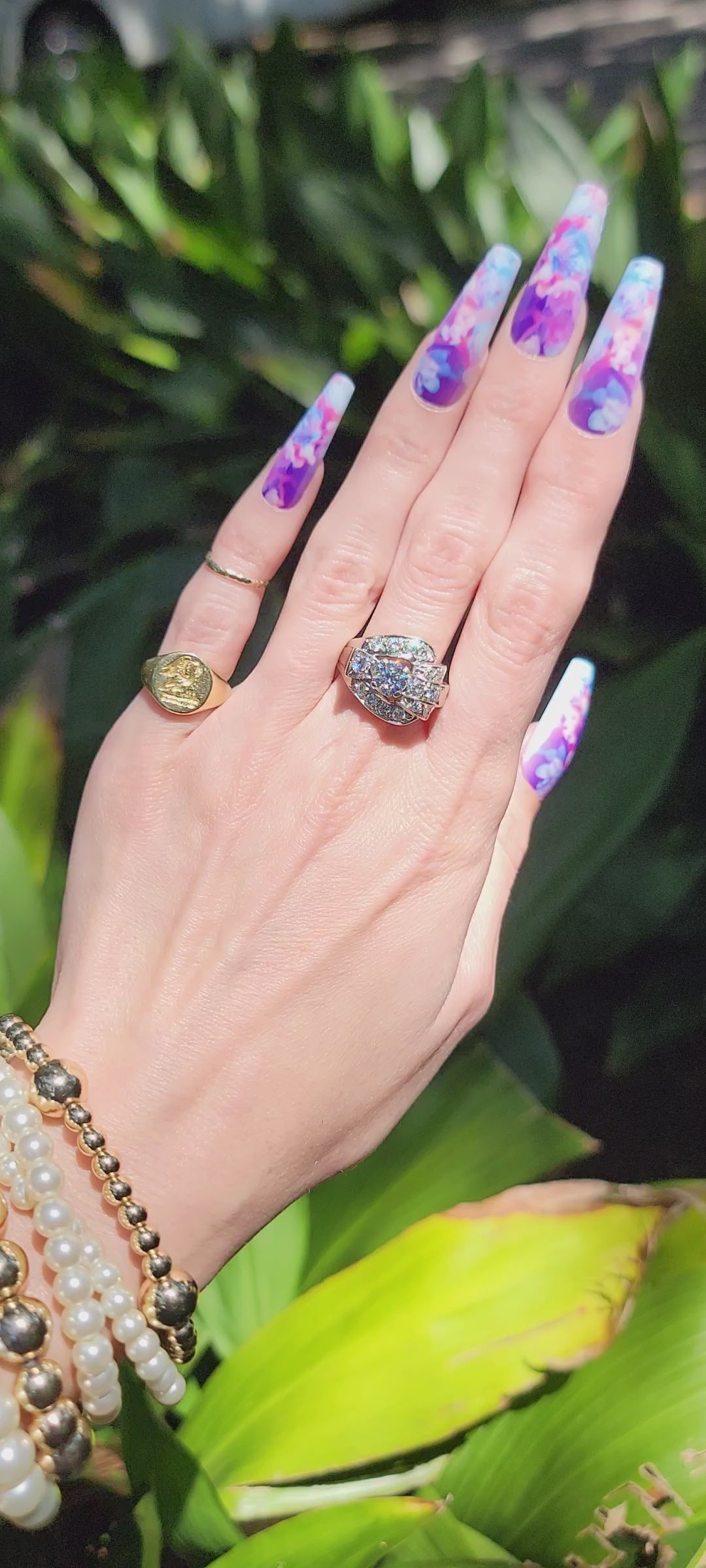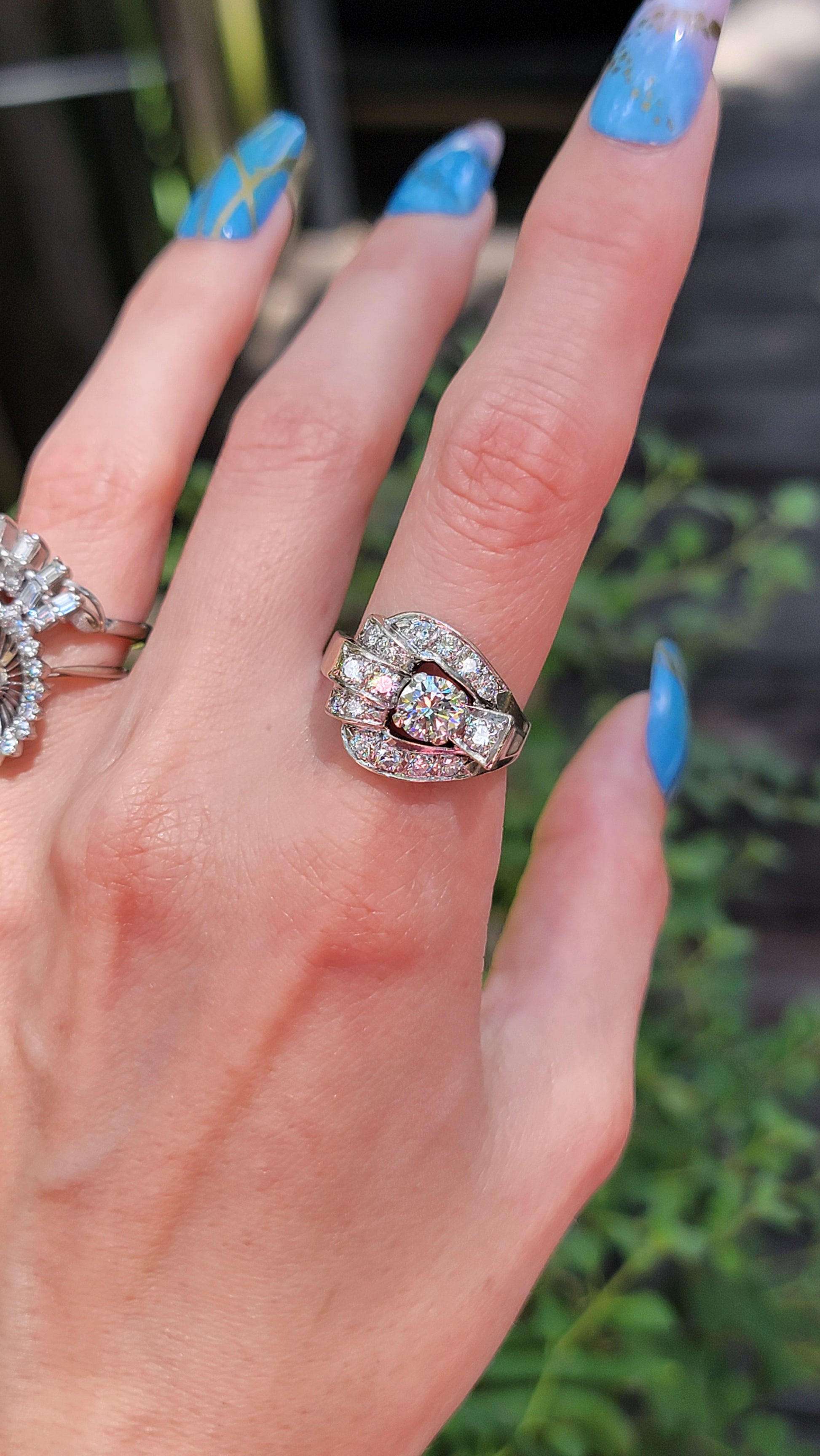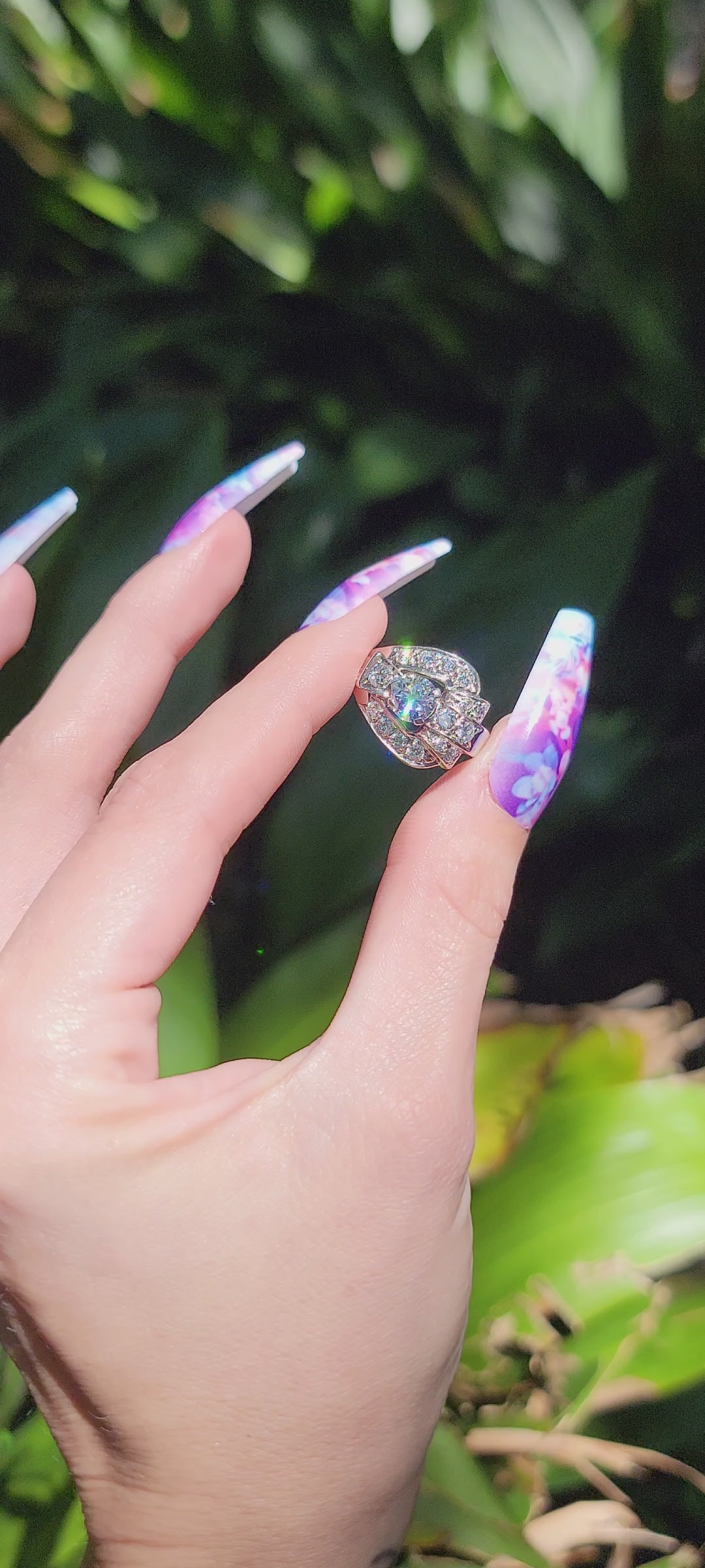 I have longed for this piece for ages. A cross between a buckle and the heft of a tank, she shined enticing rainbows at me every time I saw her that left me with a knee weakening swoon. I just wanted to save her from an inevitable melty end. She was just too stunning to let go. Eventually I was able to save this dream piece and want her to make another's knees week just like she did mine. This is an opportunity that doesn't come along often. Appraisal included!