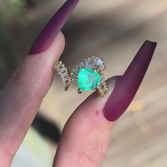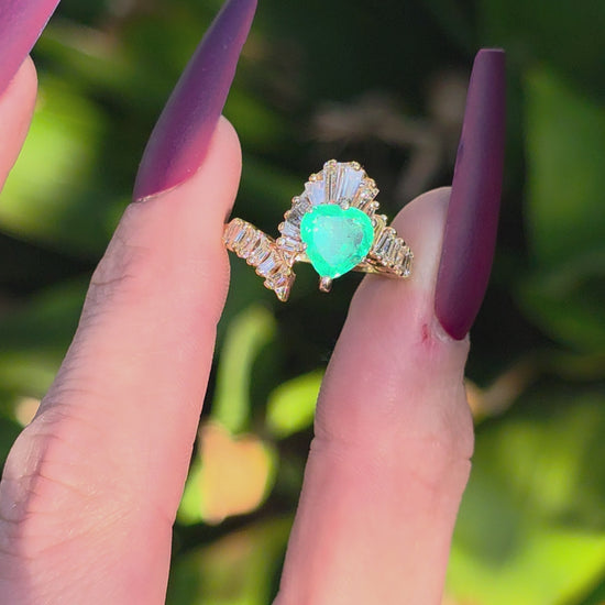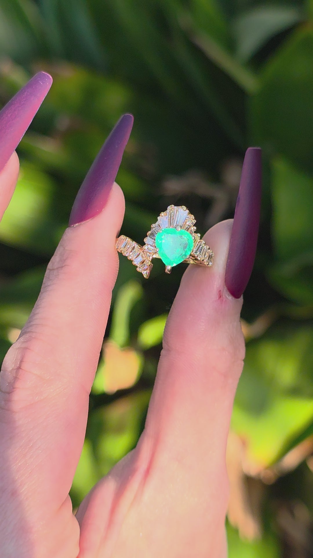 When you slip on this 14k heart-shaped emerald ring you carry a slice of pure joy. The vivid green stone catches the light like nature's own celebration, turning heads wherever you go. Crafted with the quality this emerald beauty isn't just a fleeting fashion moment it's destined to become the treasured piece your family passes down for generations. Scoop up this piece before the wave of diamonds sweeps this heart breaker into the hands of another.