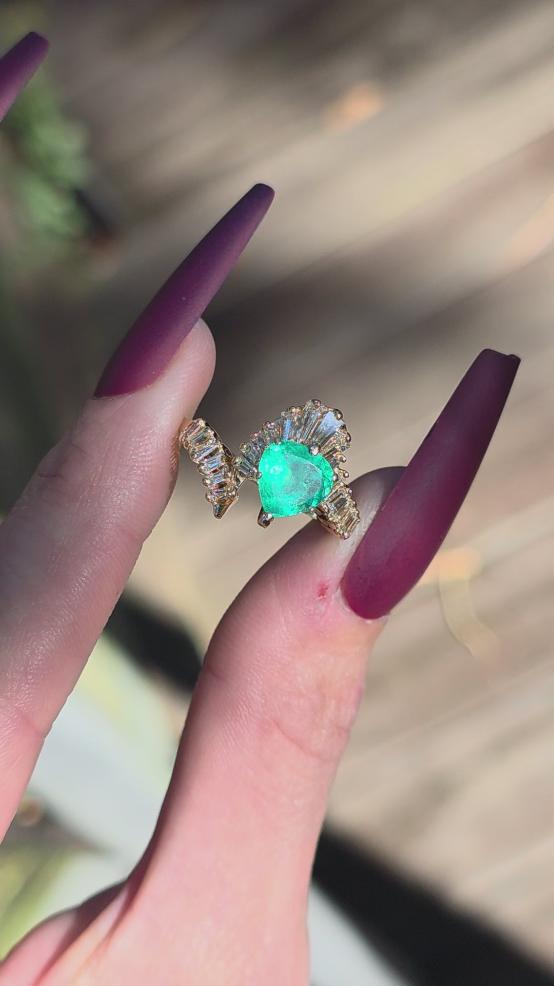 Key Attributes: Vintage 14k yellow gold, diamond, and emerald.