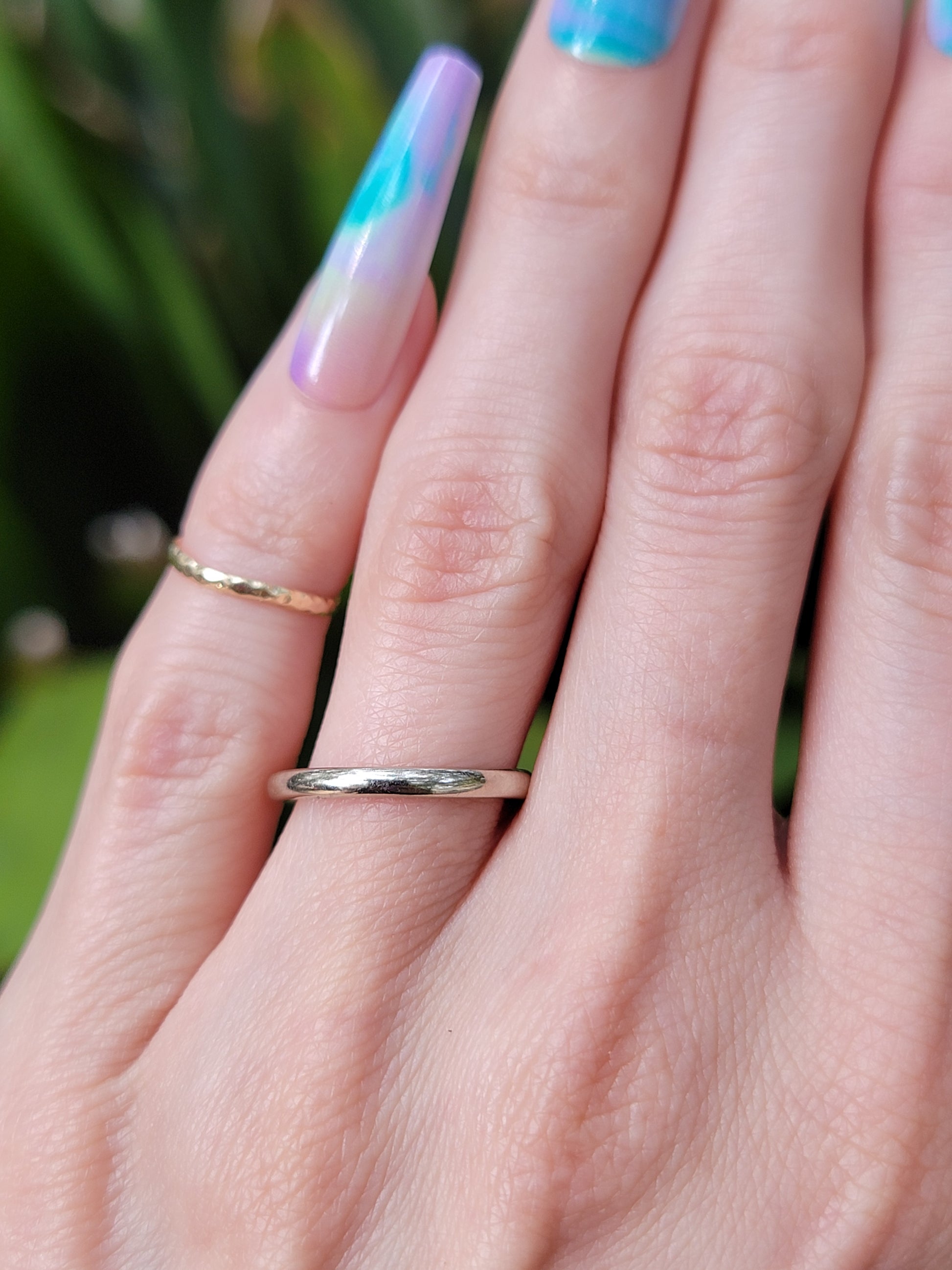 Sometimes you just have to go with a classic. This beautiful band ring is timeless. Much like you, she's stunning on her own, but really thrives in a stack of sparkly friends. If your sparkly friends are feeling a bit lonely, this classic is ready to serve. You better call her into service soon!
