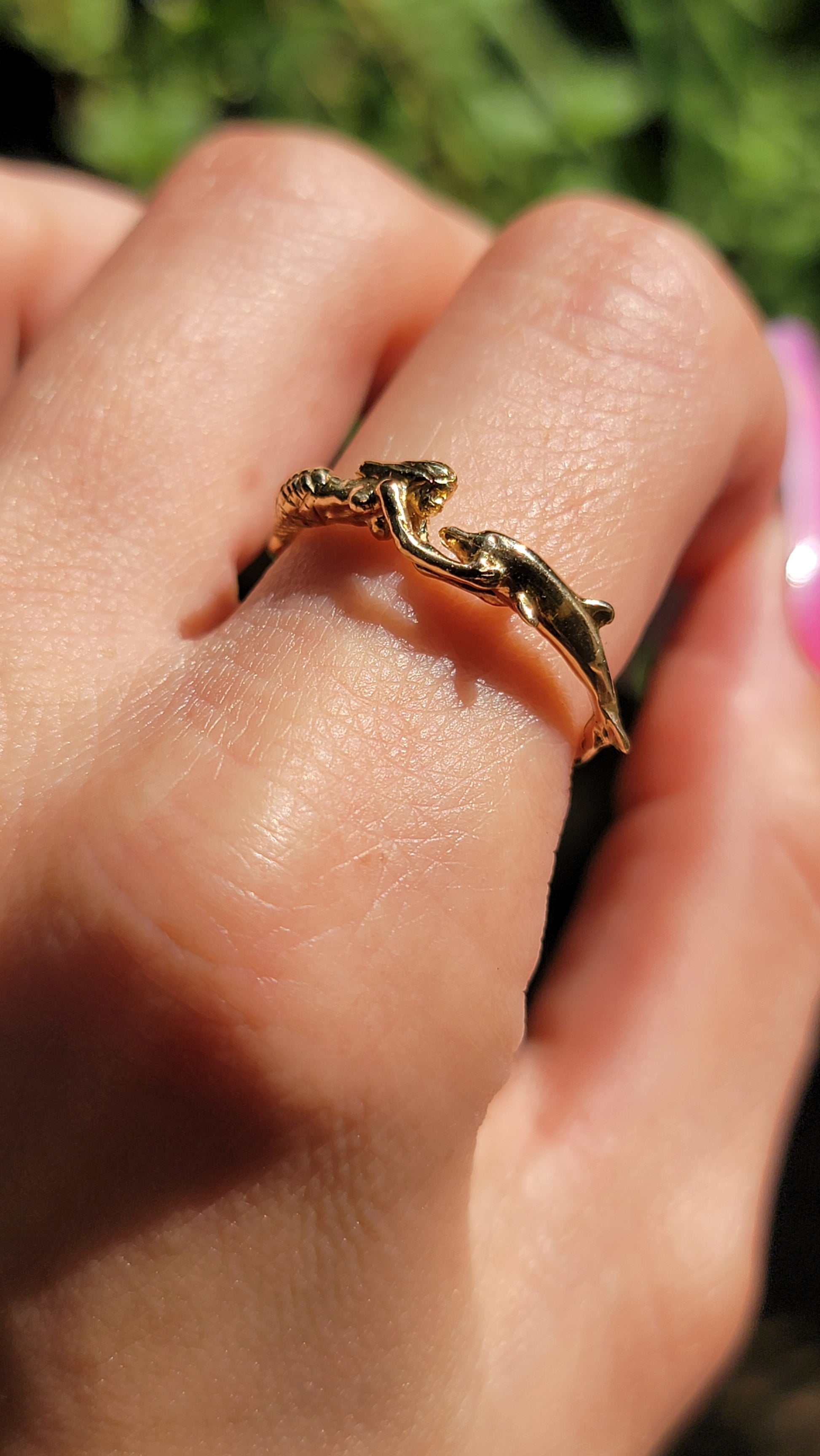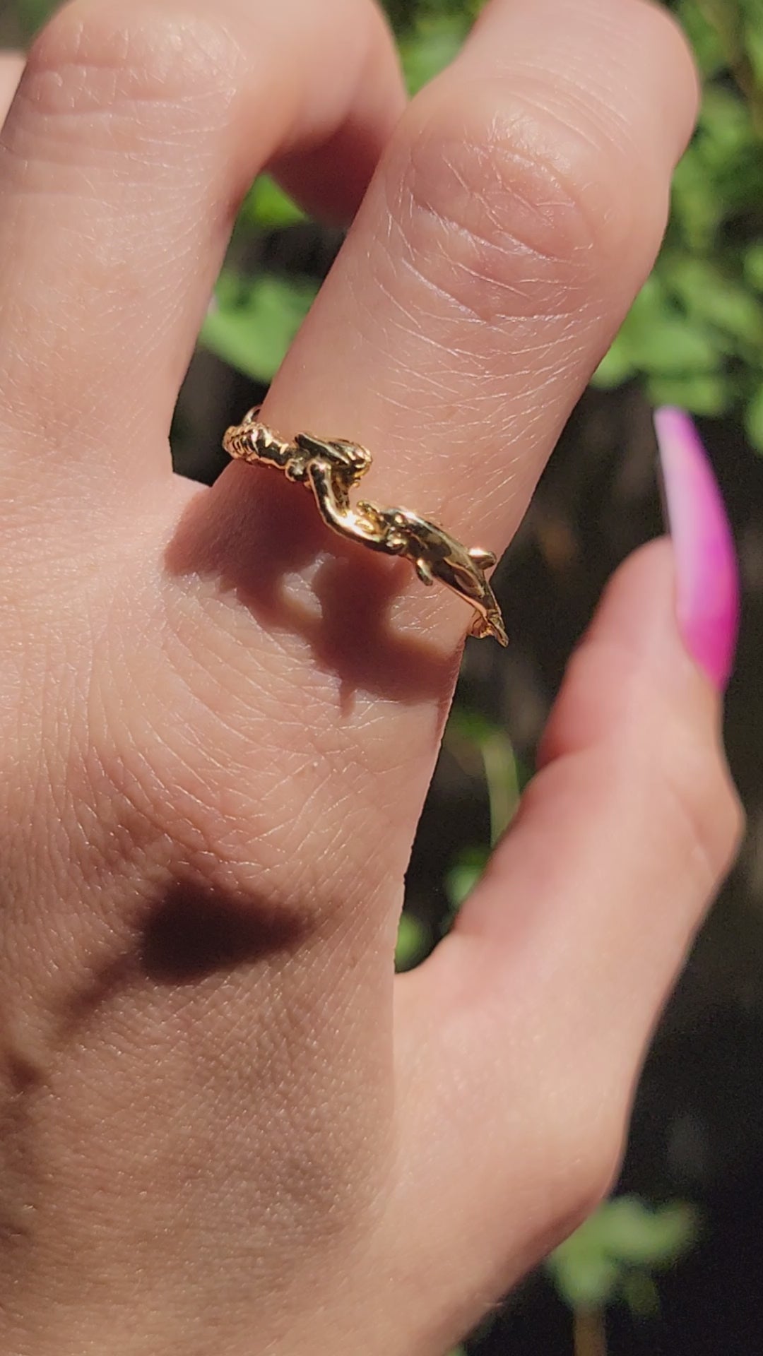 This whimsical ring is crafted in 14k gold and weighs approx. 2.8g.