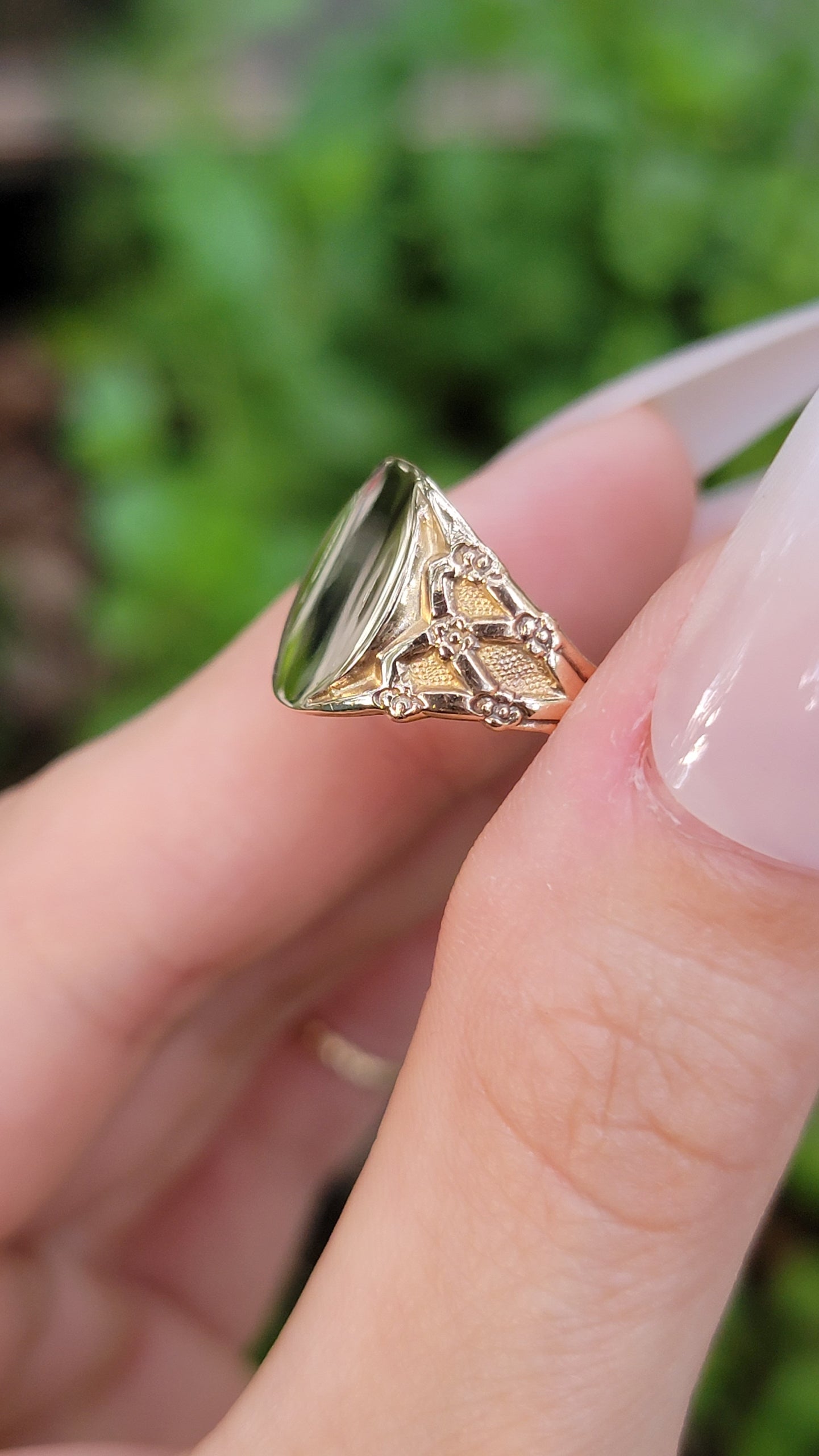 14kt Yellow Gold Floral Lattice Design Blank Signet