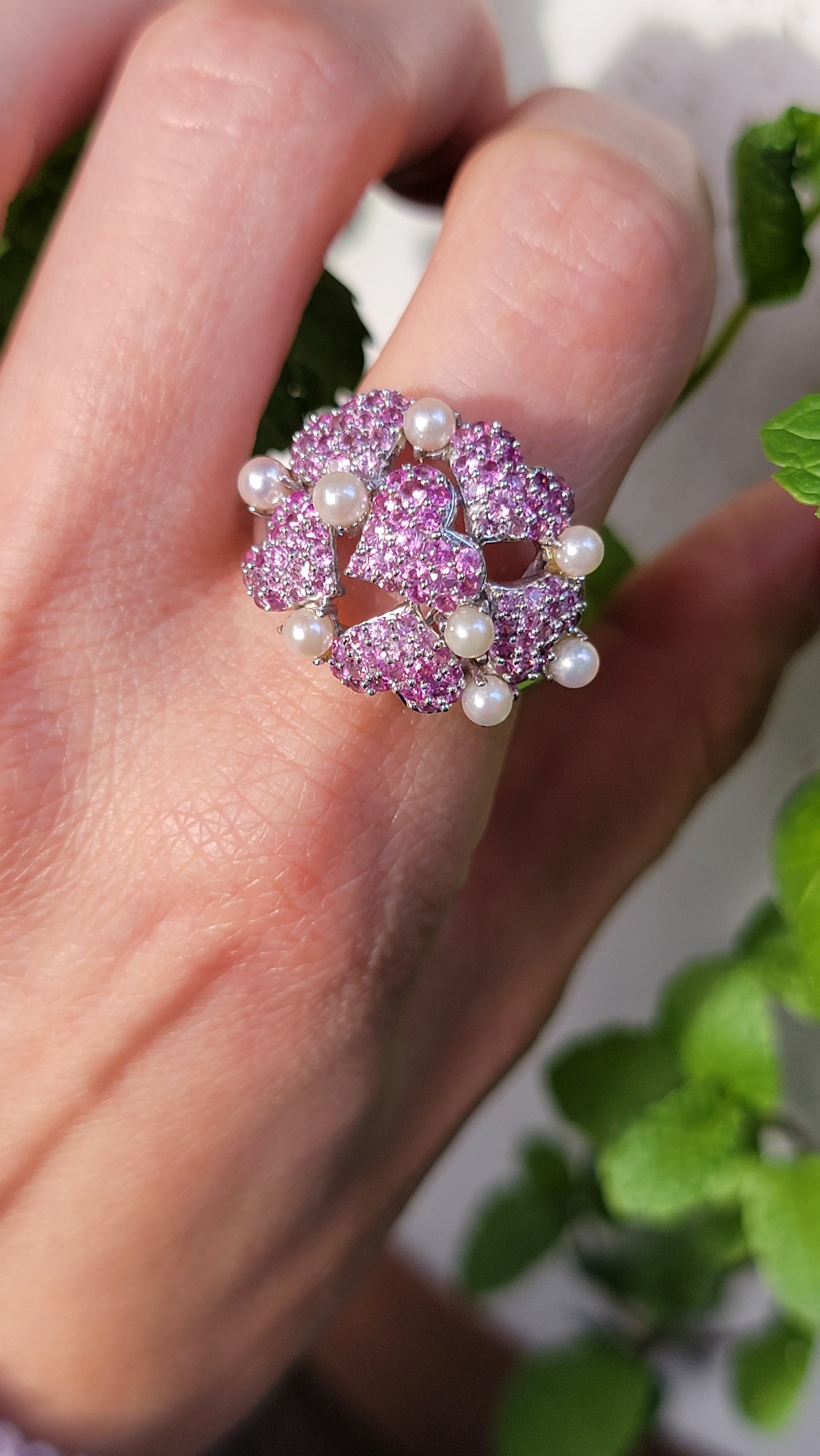 18kt White Gold Pink Sapphire and Akoya Pearl Ring