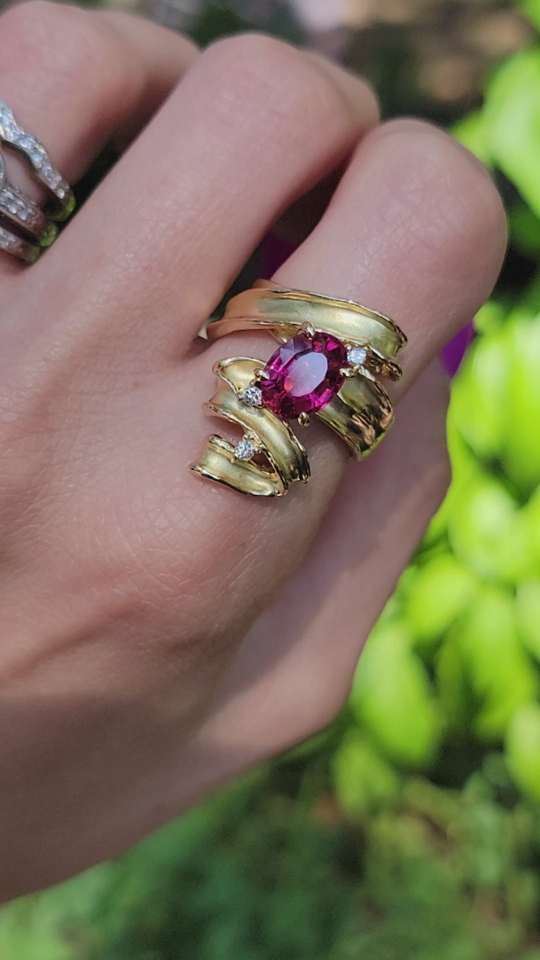 18kt Yellow Gold and Pink Tourmaline Ribbon Ring