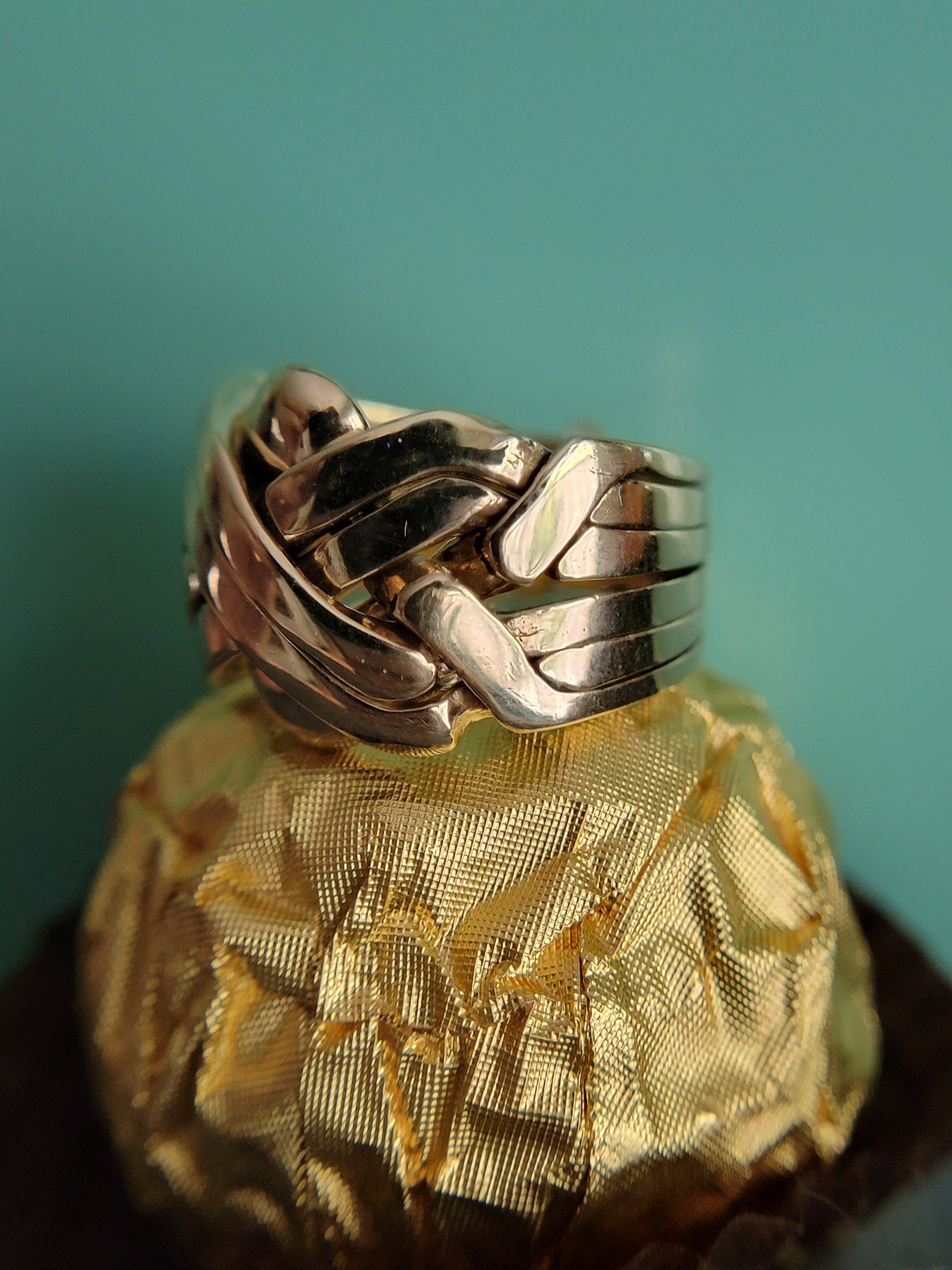 This puzzling beauty is crafted from 9K yellow gold. The piece is approx 10.5g.